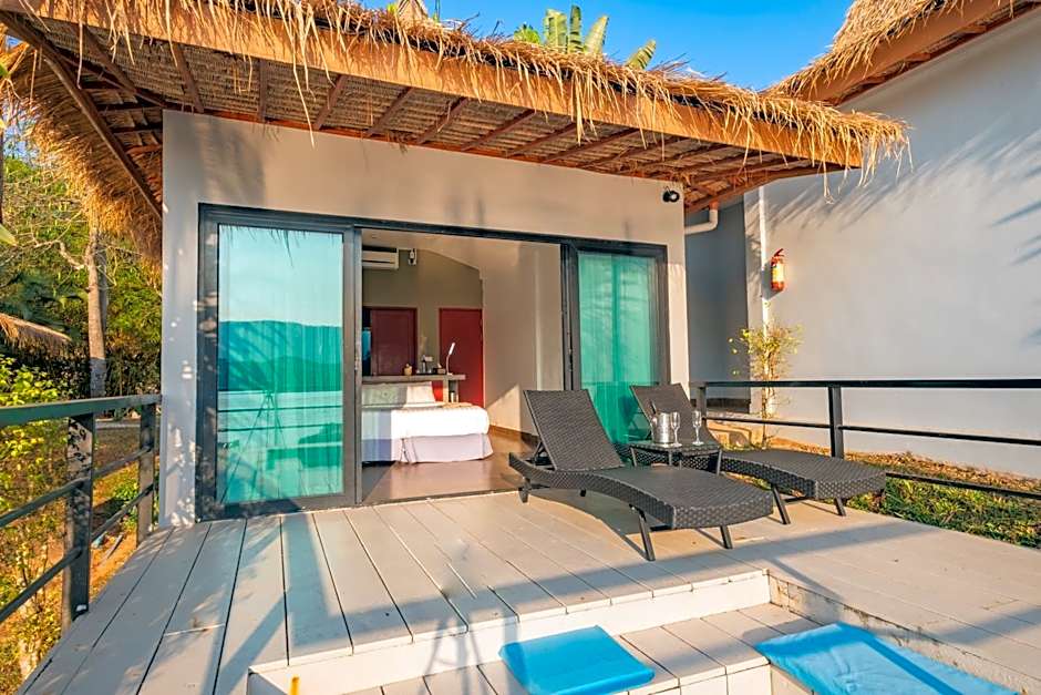 Offering views of the pool, the suite bungalows come with a backyard and a large private terrace that overlooks the lake.